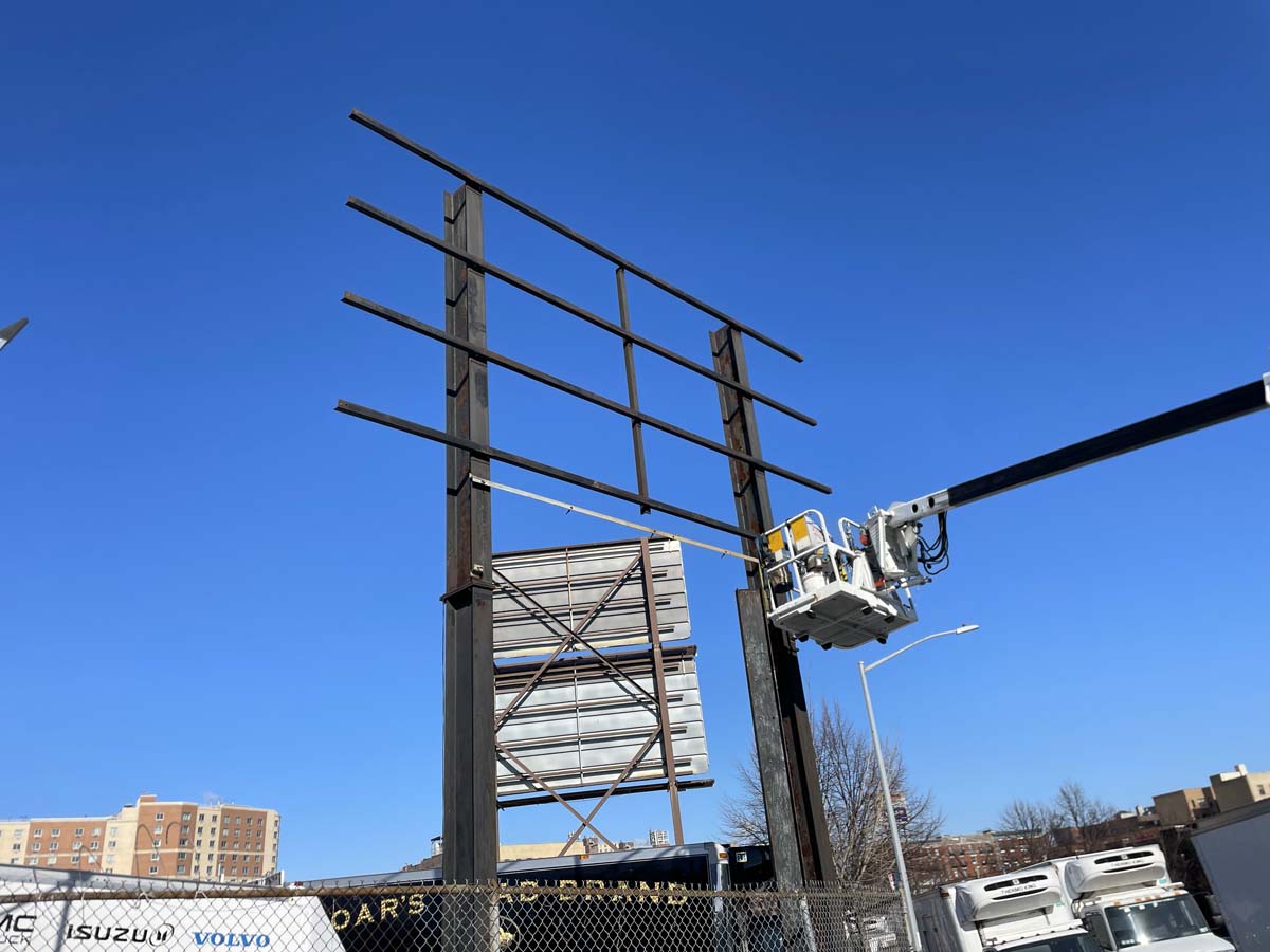 Regular travelers along the Bruckner Expressway (278) in the Bronx are familiar with Milea Trucks. Barry Milea asked me to refurbish his decrepit 30-sheeter. We replaced the secondary steel, added a panel system, and installed a new face.